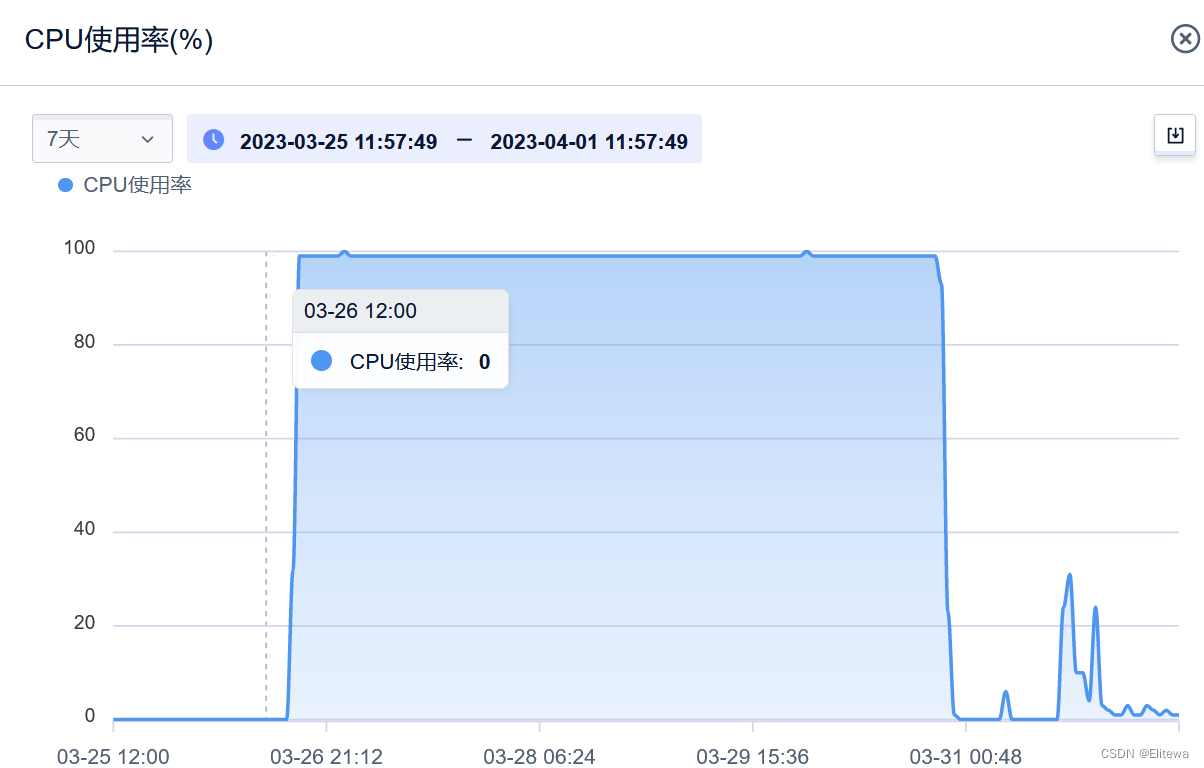 由CPU使用率统计图可知,该服务器从3.26日就已经CPU占用率达到100%,并已持续多日,于是登陆服务器查看服务器CPU进程
